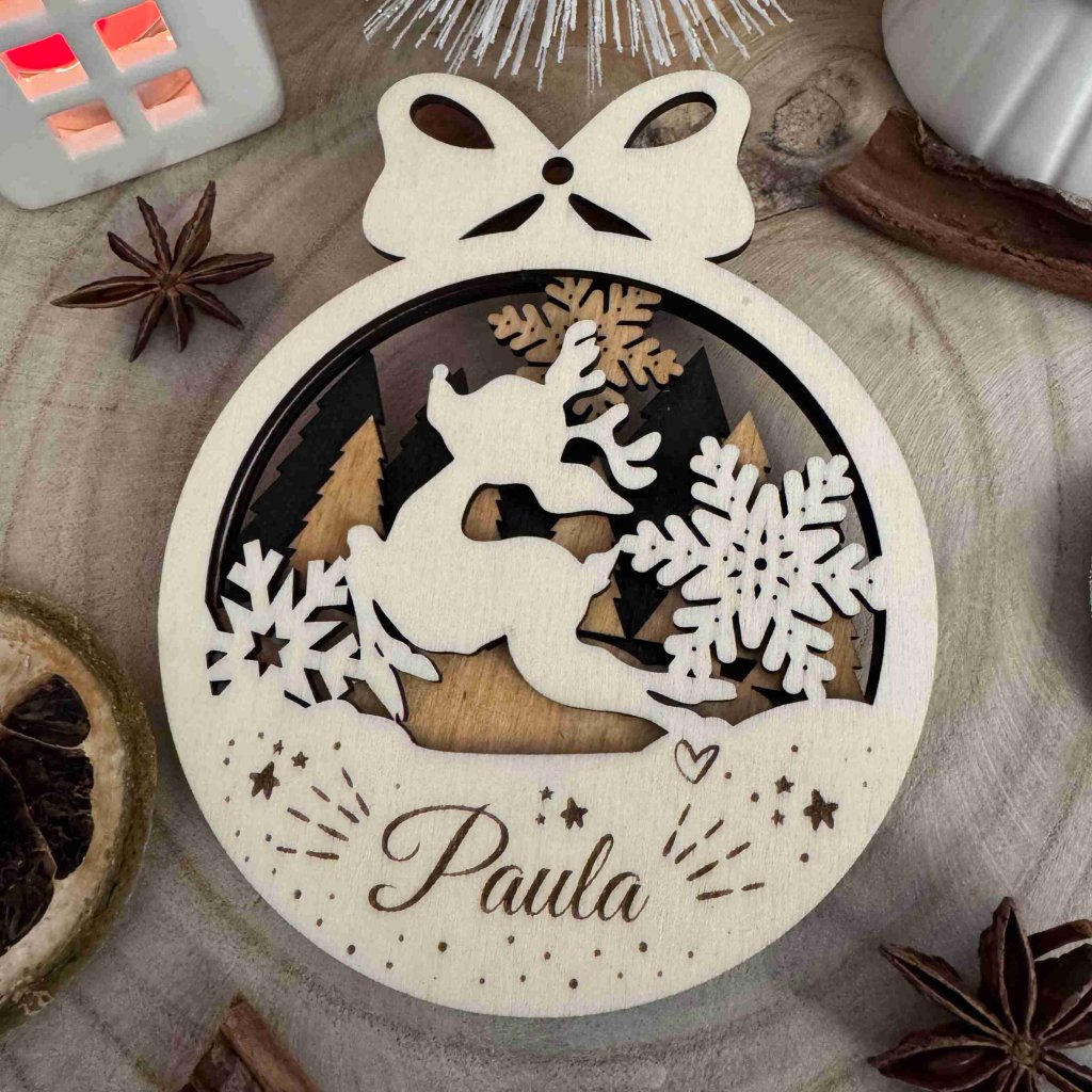 Drevená vianočná ozdoba s menom - sob (3 vrstvy) prinesie do vášho domova nádych prírody. Táto ozdoba je precízne vyrezávaná a ponúka autentické detaily, ktoré podčiarknu čaro Vianoc. Skvelo sa hodí na ozdobenie stromčeka, čím dodá vašej výzdobe jedinečnú atmosféru. Ideálna voľba pre milovníkov prírody a nadčasového štýlu, táto ozdoba je tiež vhodná ako malý darček pre blízkych.