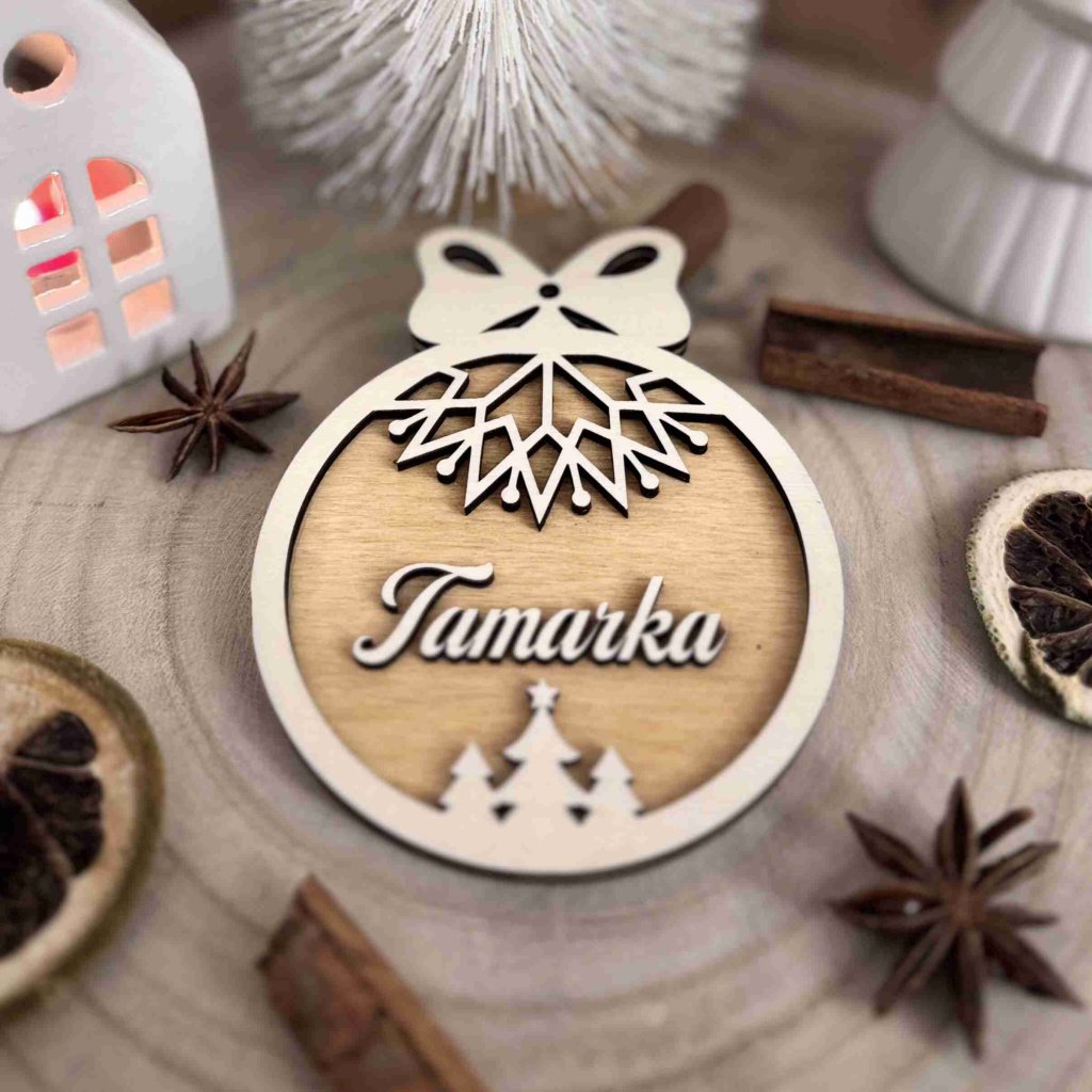 Drevená vianočná ozdoba s menom - stromček prinesie do vášho domova nádych prírody. Táto ozdoba je precízne vyrezávaná a ponúka autentické detaily, ktoré podčiarknu čaro Vianoc. Skvelo sa hodí na ozdobenie stromčeka, čím dodá vašej výzdobe jedinečnú atmosféru. Ideálna voľba pre milovníkov prírody a nadčasového štýlu, táto ozdoba je tiež vhodná ako malý darček pre blízkych.