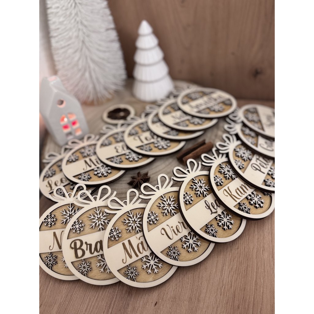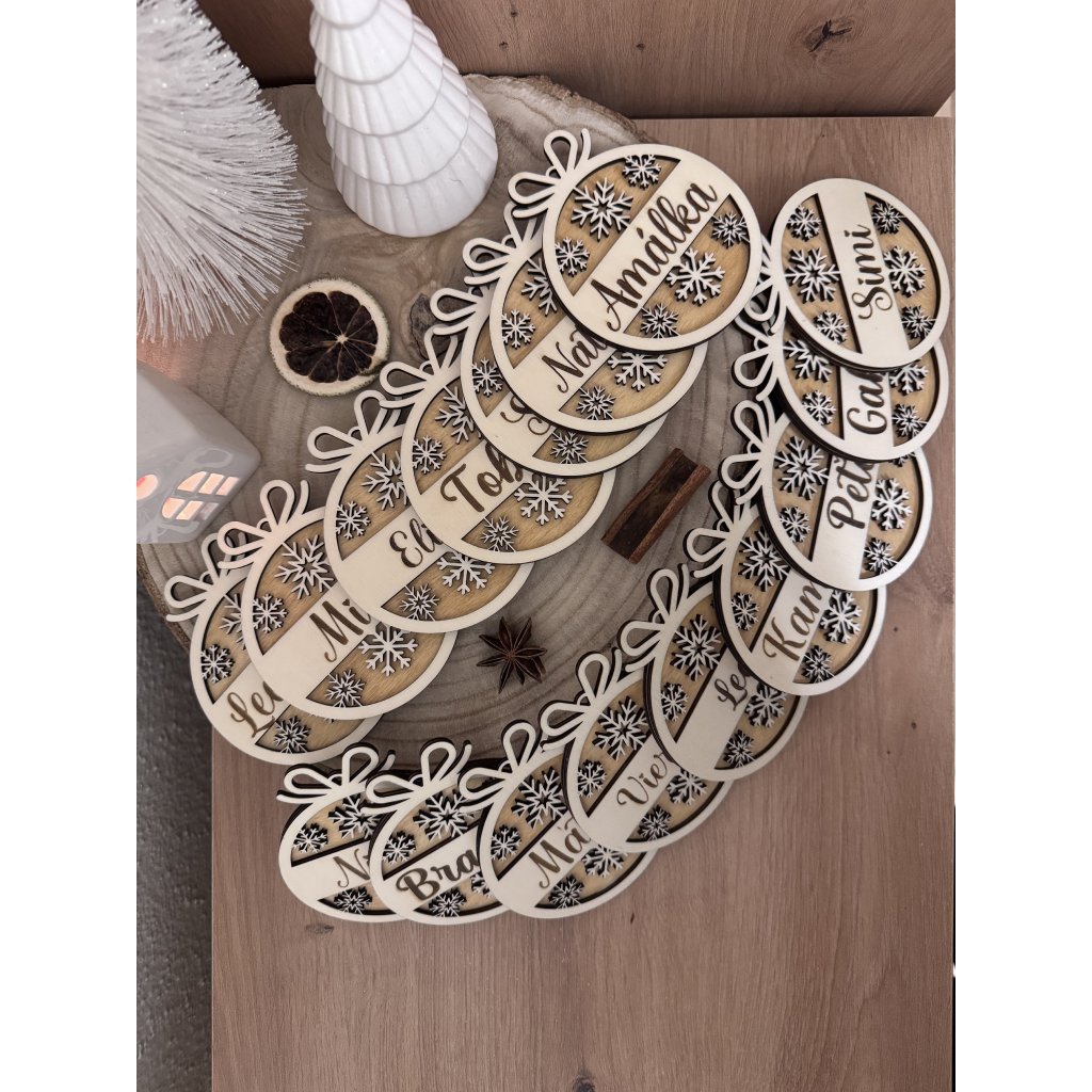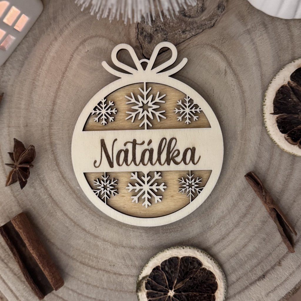 Dodajte Vianociam nádych prírody. Drevená vianočná ozdoba s menom - vločka, je starostlivo vyrezávaná a dokonale bude ladiť k vašej vianočnej výzdobe