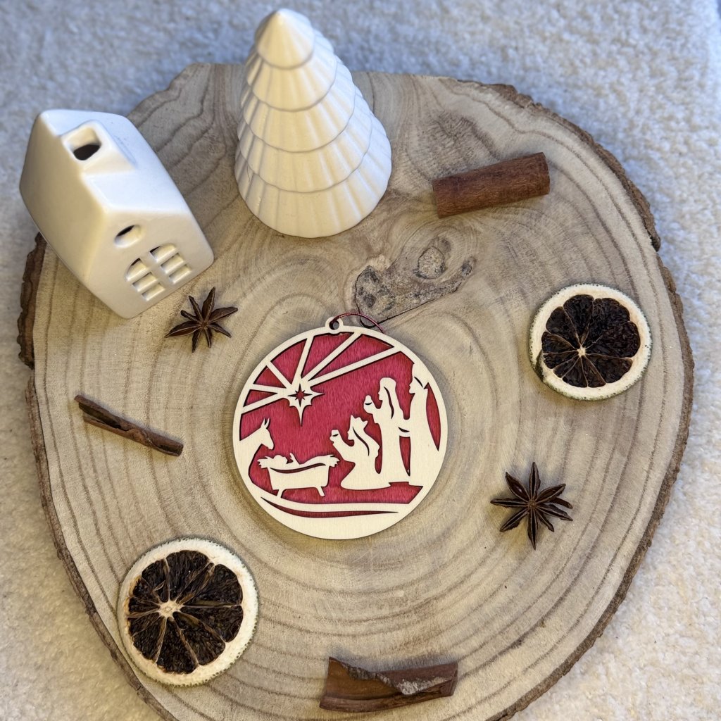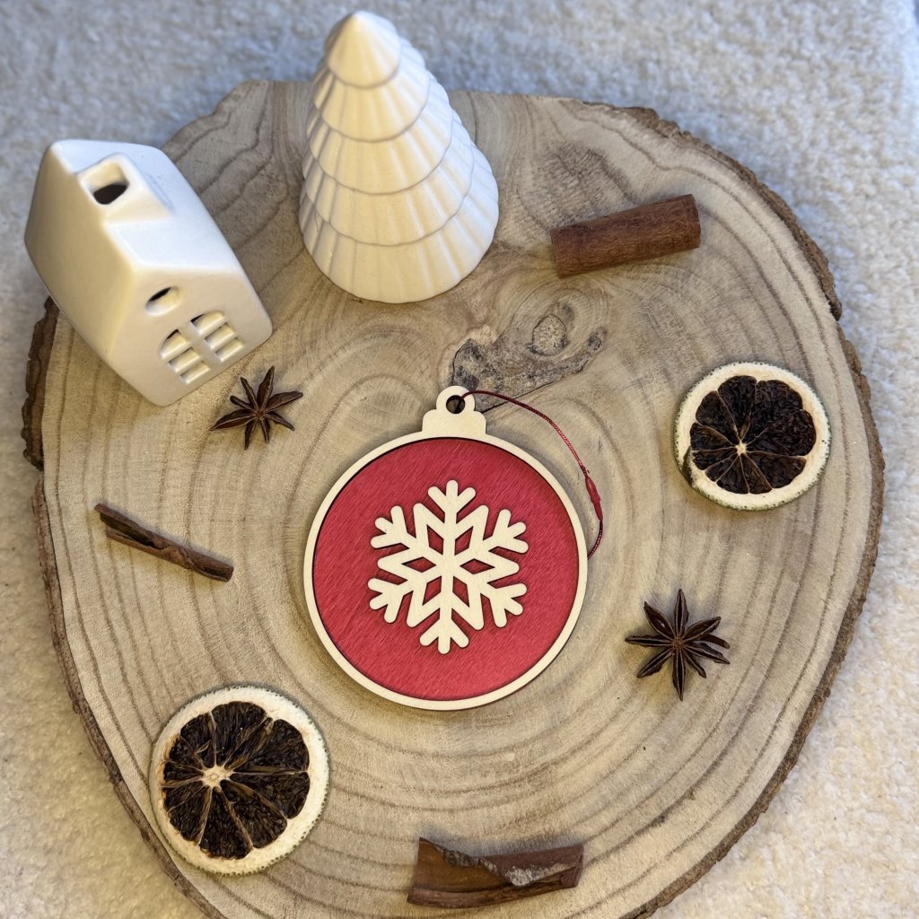 Sada 4ks drevených vianočných ozdôb s červeným pozadím - dvojvrstvové je sada, ktorá premení váš stromček na oslavu prírody a elegancie. Každá ozdoba v sade je starostlivo vyrezávaná z kvalitného dreva a ponúka jedinečné detaily, ktoré vyniknú v každom interiéri. Tieto ozdoby sú ideálne pre milovníkov tradičného štýlu a ekologického dizajnu, prinášajú teplo domova a krásu prírody priamo do vášho sviatočného priestoru. Sada poskytuje rozmanité vzory, ktoré môžete ľahko kombinovať, aby vytvorili harmonickú a štýlovú výzdobu vášho vianočného stromčeka či celého interiéru.